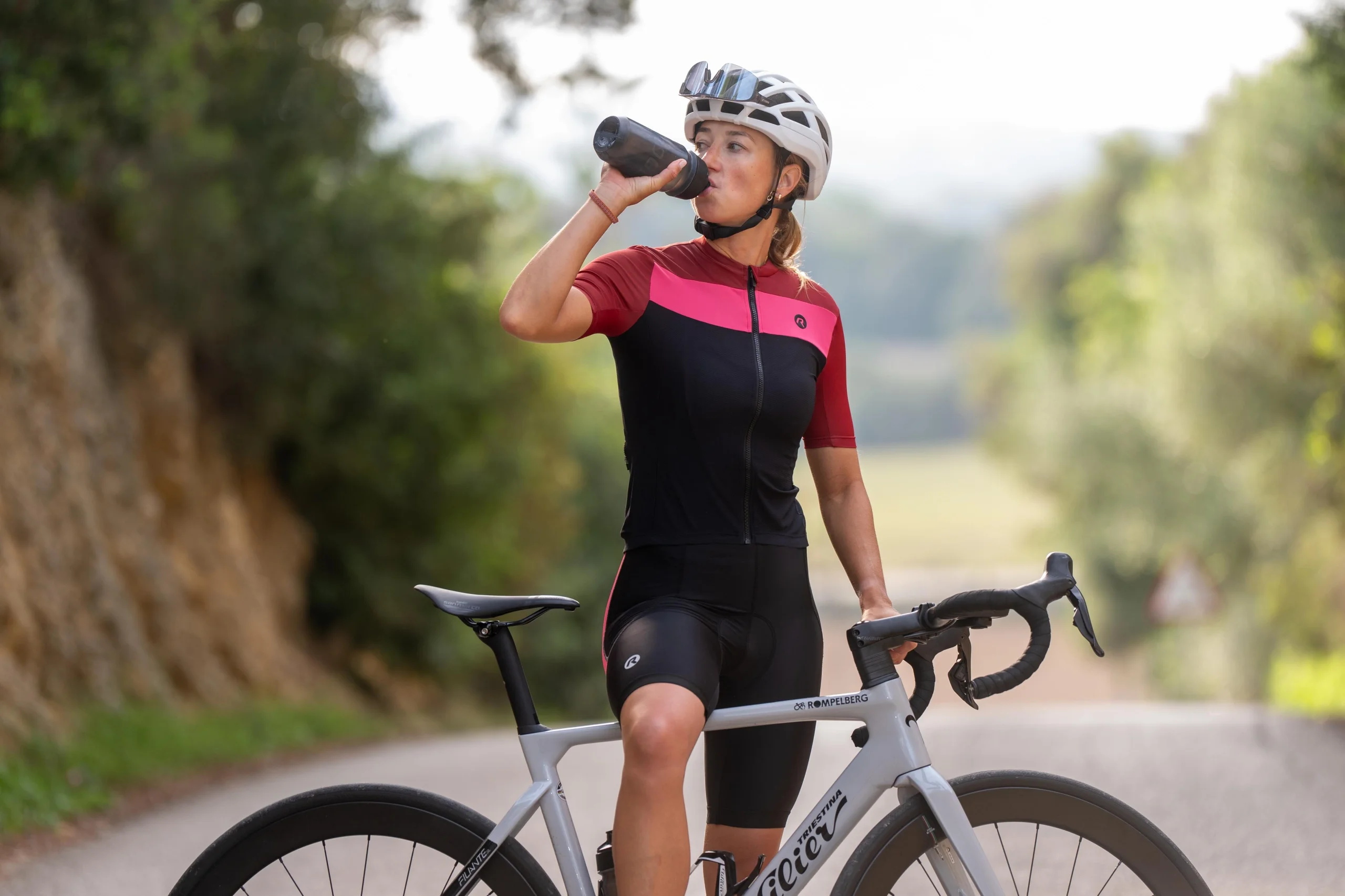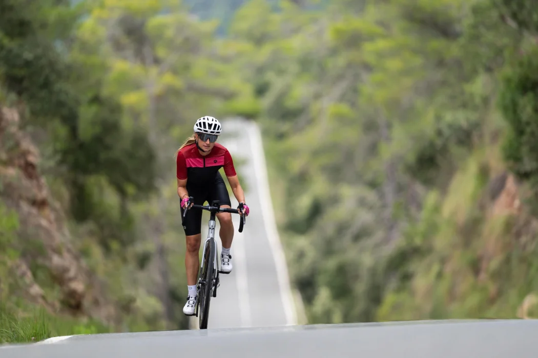 Dół wykonany jest z materiału Eco Airlite Breeze, lekkiego i oddychającego materiału, który zapewnia optymalną wentylację podczas jazdy w ciepłe dni. Góra i rękawy wykonane są z materiału Eco Dynacool, elastycznego i wygodnego materiału, który idealnie dopasowuje się do ciała, zapewniając maksymalną swobodę ruchów.