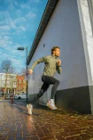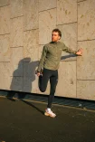 Kieszeń na piersi zapinana na zamek pomieści niezbędne drobiazgi, takie jak klucze czy telefon. Odblaskowe elementy poprawiają widoczność w warunkach słabego oświetlenia, co jest idealne podczas biegania wczesnym rankiem lub wieczorem.