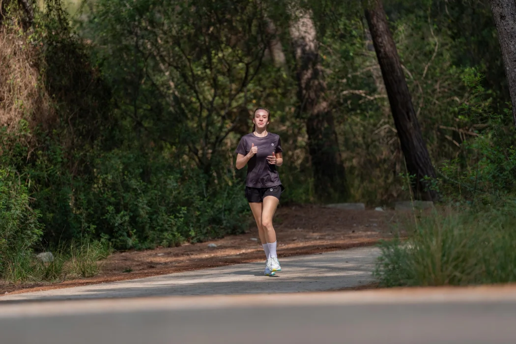 Koszulka do biegania wykonana z materiału Eco Dynaflow jest cudownie oddychająca i dzięki rozciągliwości w 4 kierunkach idealnie dopasowuje się do ruchów ciała. Niezależnie od tego, czy biegasz po parku, czy spacerujesz, ta koszulka zawsze zapewnia komfort noszenia na skórze.