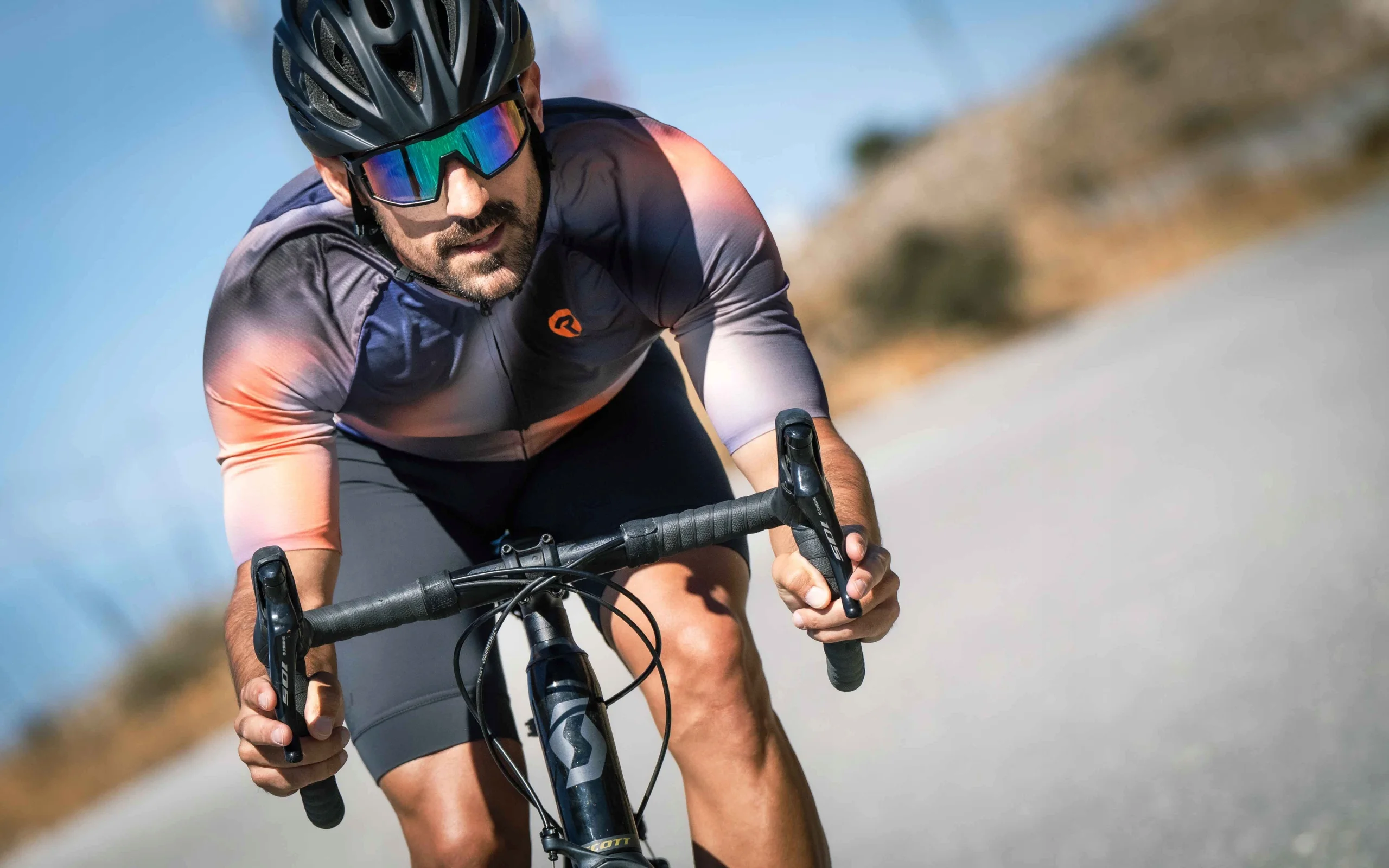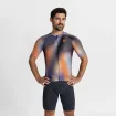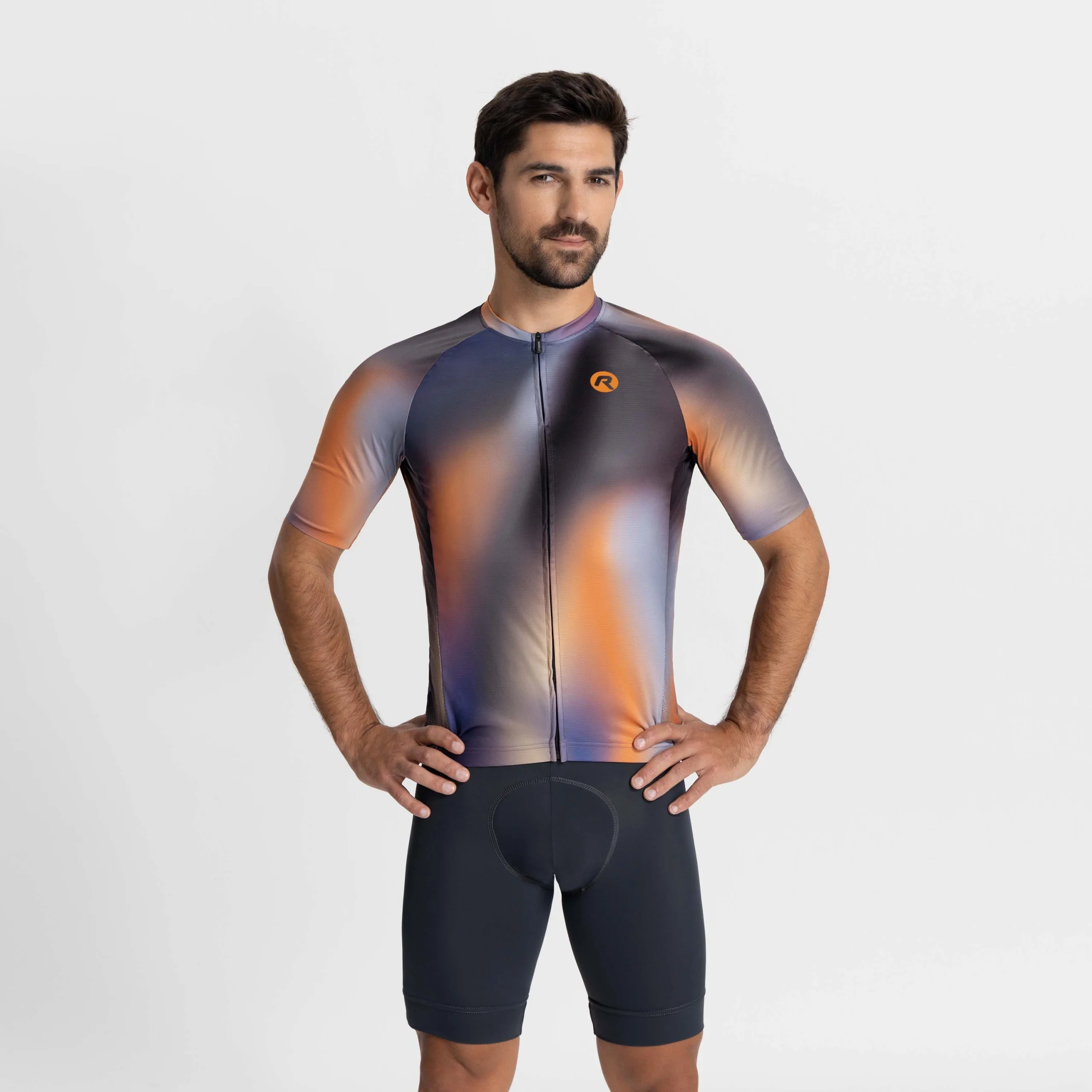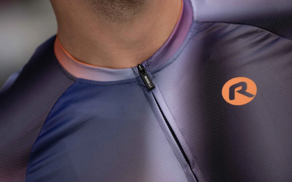 Halo to wysokiej jakości koszulka kolarska ze stylowym nadrukiem, a jej barwny gradient podkreśla nowoczesny design koszulki.