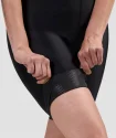 Spodnie wykonane są z ekologicznego materiału Eco Dynaflex 240, wytwarzanego z materiałów pochodzących z recyklingu. Materiał ten jest elastyczny i dobrze przylega do ciała, dopasowując się do każdego ruchu. Dodatkowo spodenki wyposażone są w szeroką, 6-centymetrową gumkę w pasie z mikrosilikonem po wewnętrznej stronie, która sprawia, że spodenki pozostają na swoim miejscu, nie uciskając, zapewniając dodatkowy komfort nawet na długich dystansach.