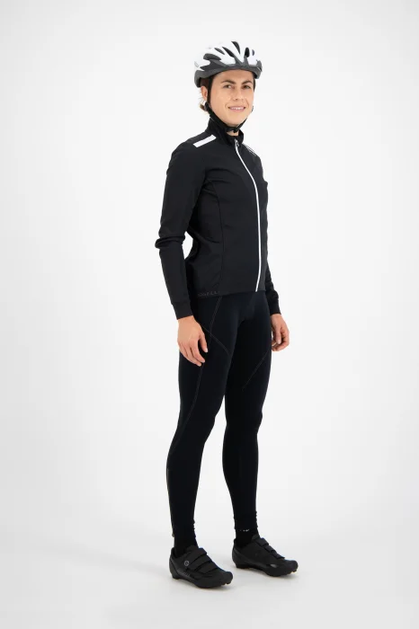 Kurtka Pesara wyposażona została w dużą tylną kieszeń zapinaną na zamek, w której możesz bezpiecznie przechowywać swoje rzeczy osobiste. Dolna część kurtki zakończona jest silikonowym pasem, dzięki czemu nawet podczas intensywnego treningu, zawsze pozostaje w na swoim miejscu. Bezpieczeństwo podczas jazdy na rowerze jest bardzo ważne dlatego kurtka Pesara ma specjalne odblaskowe elementy, dzięki którym będziesz dobrze widoczna nawet w ciemności. Dostępna jest w dwóch kolorach: czarno-białym oraz niebiesko-różowym.