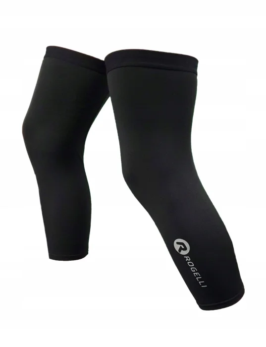 Ocieplane nakolanniki z przyjemnego w dotyku materiału - nadrukowane odblaskowe logo Rogelli - szerokie, gumowe ściągacze na końcach - silikonowe opaski w dolnej części nakolanników