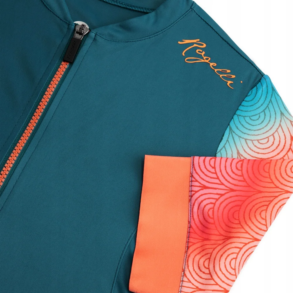 Koszulka rowerowa Waves od Rogelli ma kolorowy, falisty nadruk na rękawach i plecach, który natychmiast wprowadzi Cię w letni nastrój. Dzięki gładkiemu materiałowi, z którego wykonana jest koszulka możesz wygodnie cieszyć się jazdą na rowerze w letnie, gorące dni. Materiał koszulki został opracowany specjalnie z myślą o letniej kolekcji i nie tylko zapewnia odpowiednią wentylację, ale także jest cudownie elastyczny i przyjemny w dotyku.