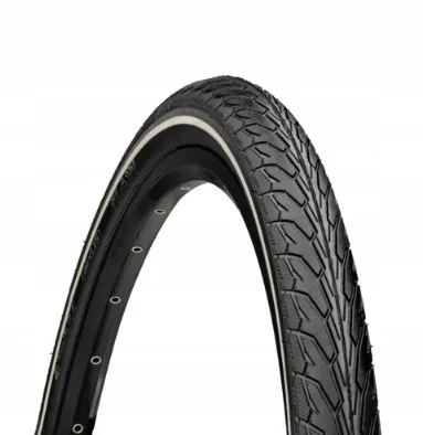 Wytrzymała opona rowerowa Rubena Flash V66 to idealny wybór do miasta, na dojazdy do pracy oraz weekendowe wycieczki. Struktura bieżnika zapewnia niskie opory toczenia i dobrą przyczepność zarówno na suchej, jak i mokrej nawierzchni, a środkowy pas nie generuje hałasu na asfalcie. Opona cechuje się trwałością oraz odpornością na ścieranie przy jednoczesnym zachowaniu dobrych właściwości jezdnych. Przekrój opony został wzmocniony stalową linką, składającą się z 4 cienkich drucików.