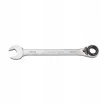 Klucz jest wykuty z wysokiej jakości stali chromowo-wanadowej. Klucz wyróżnia wyjątkowa wytrzymałość, trwałość i ochrona powierzchni, co zapewnia użytkownikowi niezawodne i długotrwałe użytkowanie. To wszechstronne rozwiązanie do wkręcania śrub i nakrętek oraz niezastąpione narzędzie zarówno dla profesjonalistów, jak i majsterkowiczów. Klucz posiada dwukierunkowy mechanizm zapadkowy w części oczkowej, co zapewnia szybkie przykręcanie. Pierścień blokujący na mechanizmie zapobiega zsunięciu się klucza z nakrętki.