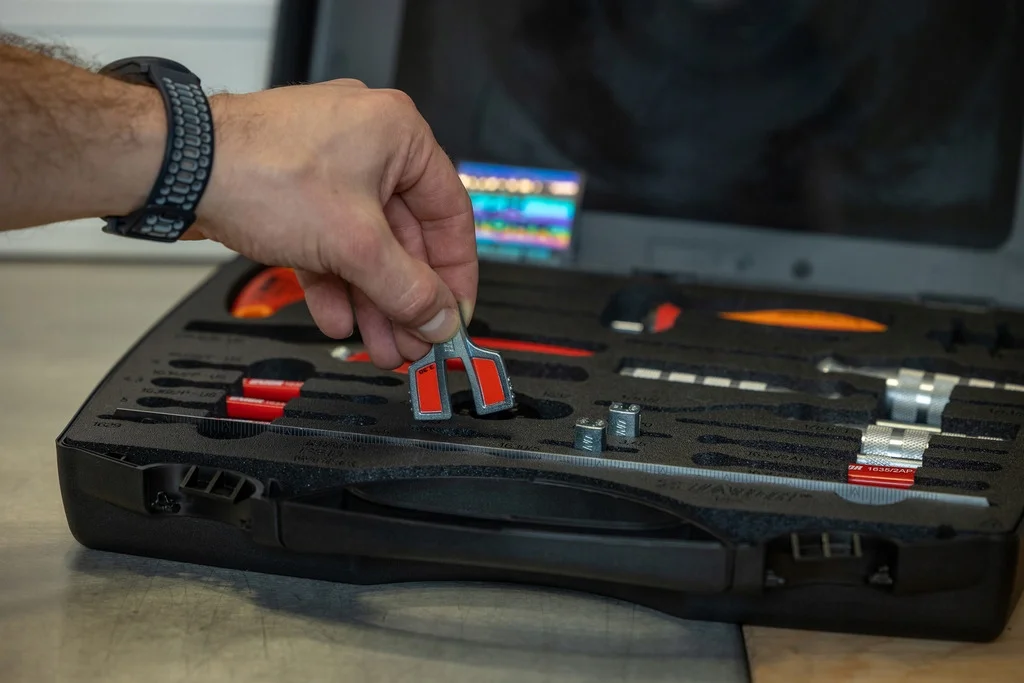 Ten wszechstronny zestaw do budowy kół zawiera wszystkie narzędzia, których profesjonalista lub domowy mechanik może potrzebować do zbudowania koła od komponentów do gotowego elementu i utrzymania kół w linii prostej. Zawiera 19 specyficznych dla kół narzędzi w przyjaznym dla warsztatu pudełku do przechowywania z wstępnie przyciętymi piankowymi wkładkami