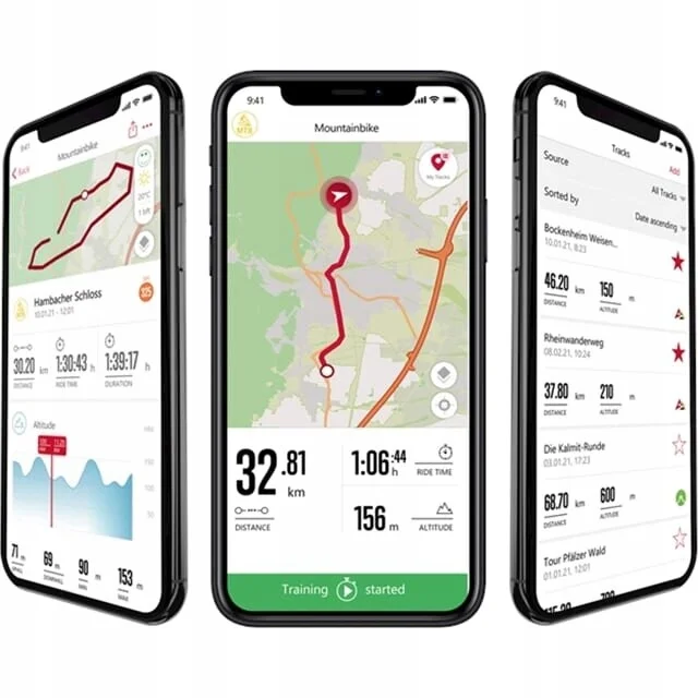 Dzięki bezpłatnej aplikacji SIGMA RIDE dane treningowe są przesyłane przez BLE z komputera rowerowego GPS do smartfona i tam gromadzone.