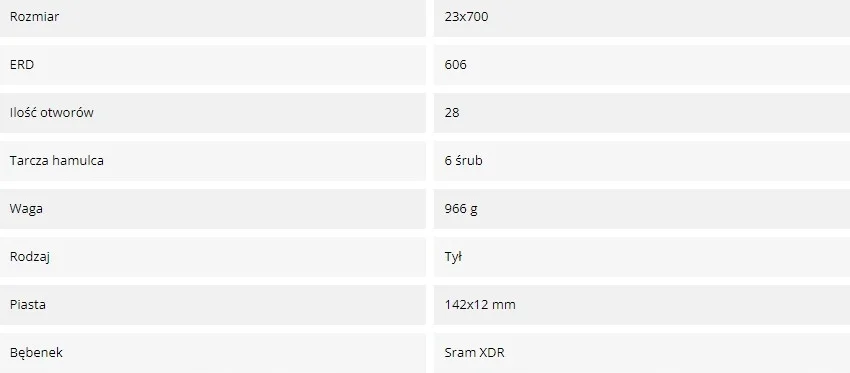 • maksymalne napięcie szprych: 110-120 KgF
