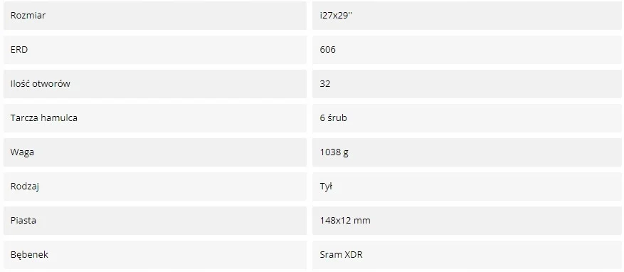 - maksymalne napięcie szprych: 110-120 KgF