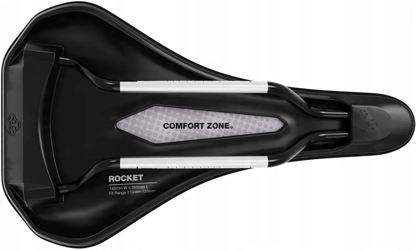 - Comfort Zone & Love Channel - Specjalnie wyprofilowane strefy ulgi zmniejszają nacisk na okolice krocza i wspomagają krążenie, zapewniając większy komfort i lepsze skupienie na jeździe.