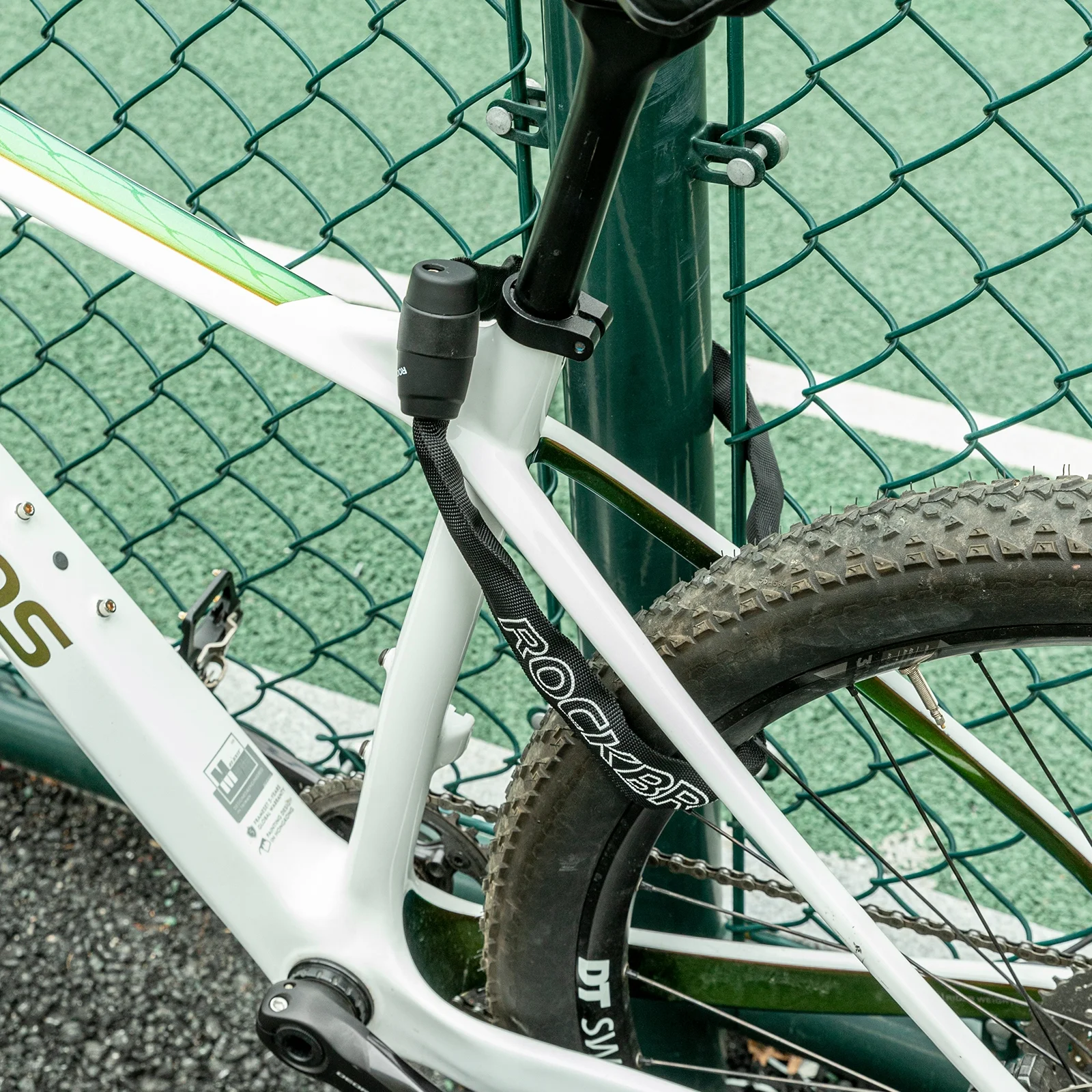 Blokada rowerowa przyjmuje łańcuch ze stali hartowanej o grubości 15,61 mm, zapobiegający przecięciu i kradzieży, trudniejszy do kradzieży. Elastyczna osłona z tkaniny nie tylko chroni rower przed zadrapaniami, ale także przed piłami i podobnymi przedmiotami.